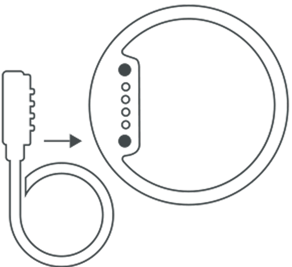 Plug charging cable to the magnetic socket in the back of the device, charging can take up to 2 hours (till the green led gets solid)